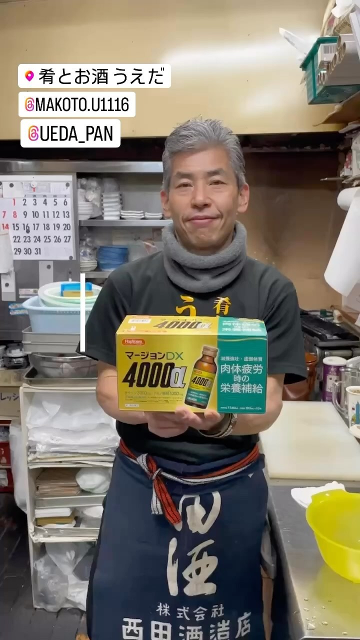 お客様から栄養ドリンク頂きました。 有難く頂戴し今日も1日頑張ります。 #肴とお酒うえだ #板橋居酒屋 #栄養ドリンク #元気ハツラツ #主食パン屋うえだ #北…