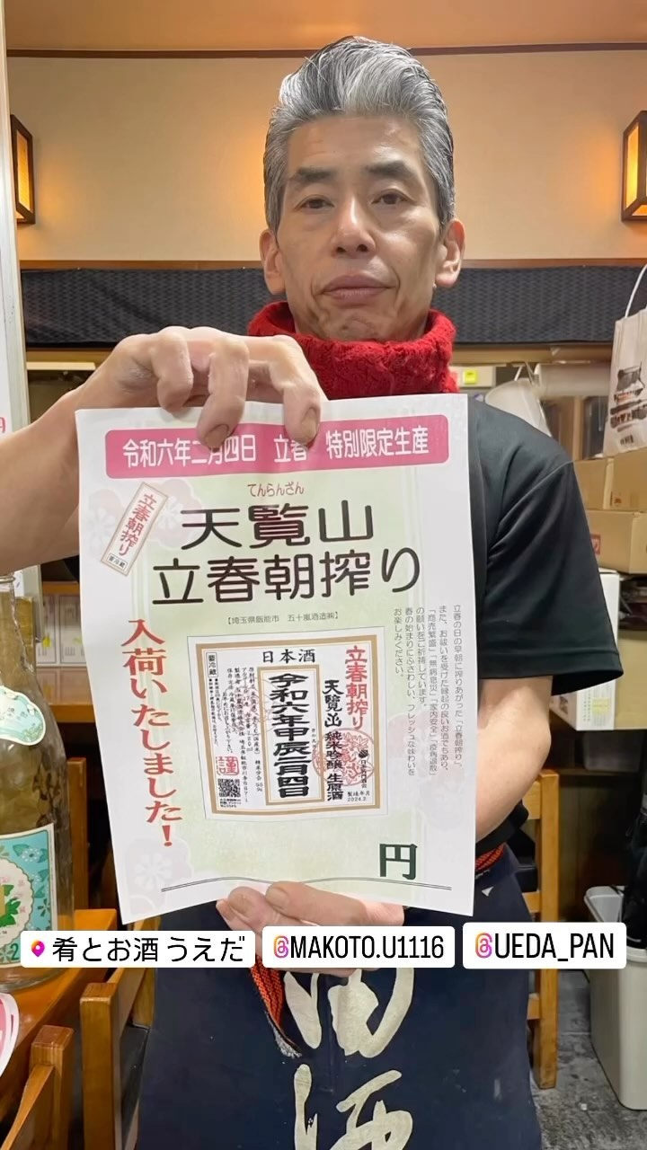 毎年2月4日の立春の日に搾り そのまま瓶詰めし皆様の無病息災、 家内安全、商売繁殖を願ってご祈祷された 「立春朝絞り」 #肴とお酒うえだ #板橋居酒屋 #主食パ…