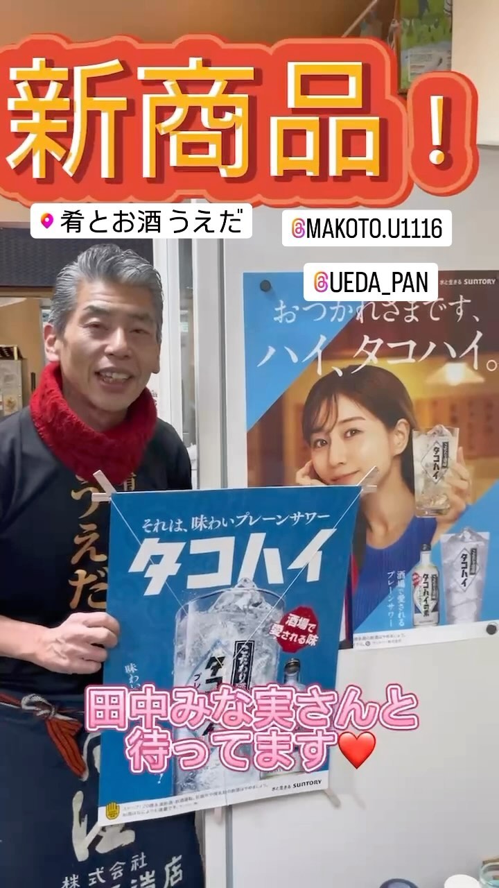 ー「肴とお酒うえだ」から皆様へー CM等でご存じの方もいらっしゃると 思います「タコハイ」をご提供させて 頂ける様になりましたのでご案内申し上げます。 「タコハイ」のタコは、🐙では無く多く幸が、 皆様に有ります様にとの願… 続きを読む ー「肴とお酒うえだ」から皆様へー