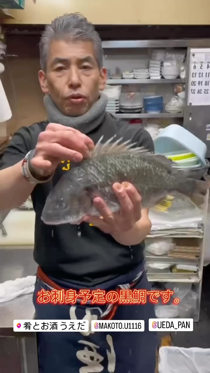 お刺身予定の黒鯛のお知らせ #肴とお酒うえだ #板橋居酒屋 #お刺身 #鯛 #主食パン屋うえだ #北区滝野川…