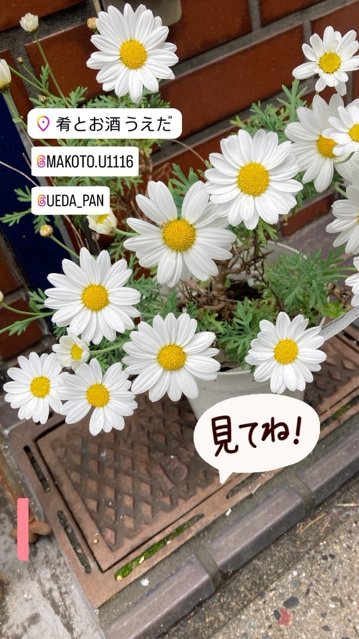 「肴とお酒うえだ」から春先の出来事 昨年お客様様から頂いたマーガレットが、 無事に越冬して春の訪れと共にお花を つけてくれました。 桜は散りましたが、これからの…