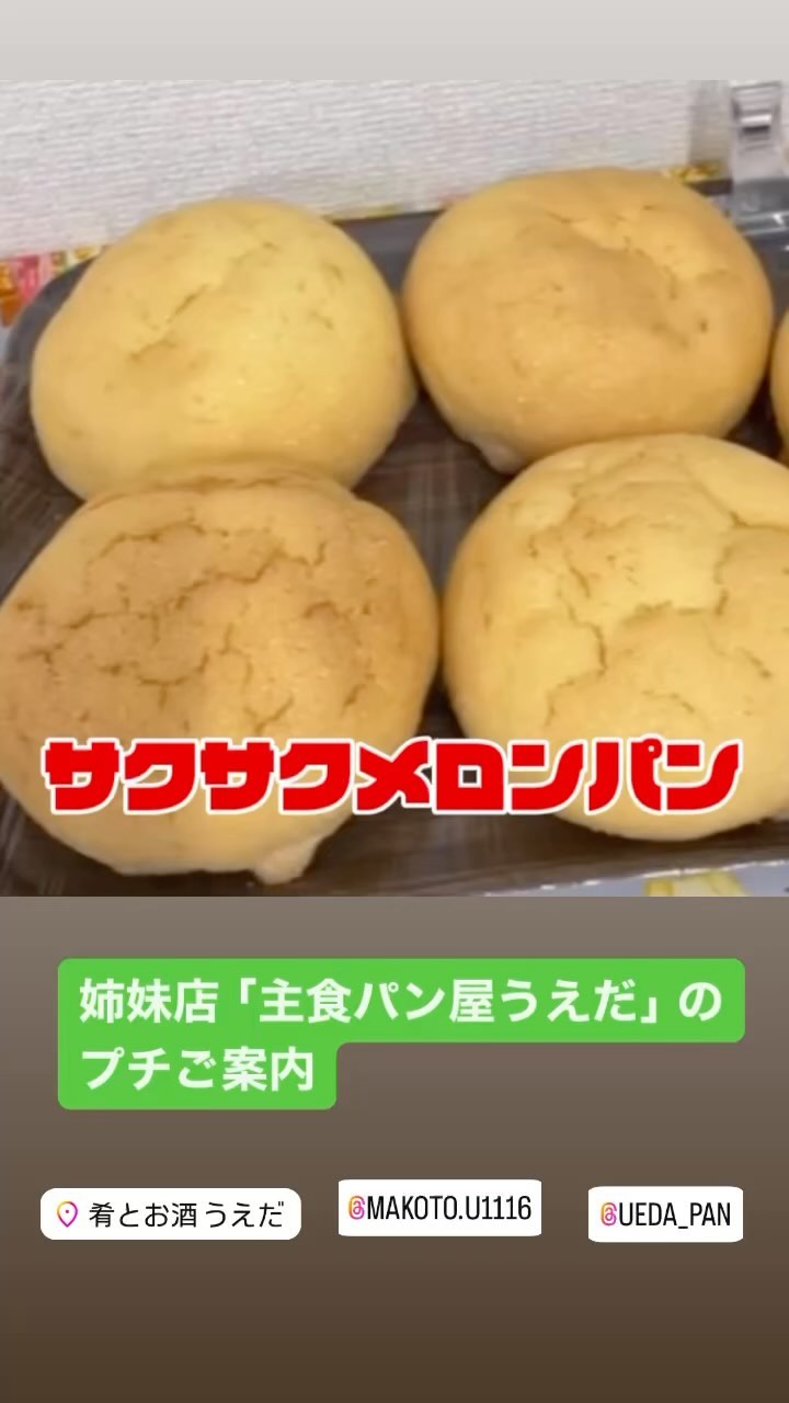 姉妹店「主食パン屋うえだ」から プチご案内 #主食パン屋うえだ #北区滝野川 #メロンパン #デニッシュ #クロワッサン #肴とお酒うえだ #板橋居酒屋…
